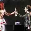 Rihanna accepts the International Female Solo Artist trophy from Cheryl Cole during the Brit Music Awards 2011 in London on February 15, 2011.