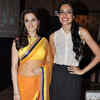 Monica Bedi and Sarah Jane Dias filrt with the lense during Golden Achiever Award, held in Mumbai, on May 9, 2013.