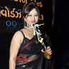 A guest poses with her trophy during the Gujarati Film Awards '14