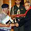 President Pranab Mukherjee honours TS Balasubrmanian of Tamilnadu state Bharat scouts and Guides with Silver Star Award 2011-12 during the Scouts and Guides Awards (2011 & 2012) ceremony, held at Rashtrapati Bhavan, in New Delhi. (PTI/Subhav Shukla)See more of :