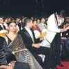 Rekha stands and greets Priyanka Chopra who was just sitting next to her during the 54th Idea Filmfare Awards 2008. (BCCL/Shantanu Das)