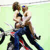 One of the photos sees him chilling with the crew on set. The other shows a racy photo of the actor on a motorbike with a bikini-clad girl in front of a green screen. (Pic Courtesy: Facebook)