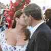 Pierce Brosnan and wife Keely Shaye Smith kiss passionately as they arrive at the World Premiere of 'Mamma Mia'. (Getty Images/Dave Hogan)