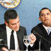 While celebrities who supported Prez Barack Obama rejoice, the pro-Mitt Romney celebs put on their 'losing' faces. Hollywood ace George Clooney is seen here making a point in favour of BO during campaign time. Check out more pics.