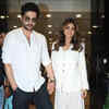 Karishma and Varun were seen twinning in black as they get clicked after attending a party in Mumbai.