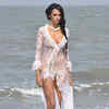 Judi Shekoni in skimpy outfit on Mumbai beach