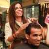 Kanta does a make-over at Zaheer Khan in Mumbai. (Pic: Viral Bhayani)