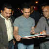 Aamir signs his autograph on his 'ghajini' sketches in Ahmedabad. (BCCL/Vijay Soneji)