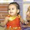 Bhakti, flanked by her adopted parents at the first b'day party at a Municipal School, Ushmanpura area in Ahmedabad on Tuesday, May 06, 2008. (Photo/Bhadresh Gajjar)