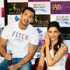 John Abraham and Deepika Padukone promote their movie 'Desi Boyz' in Bangalore. (PTI)