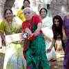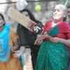 Mothers and Grannies play cricket during media briefing on Cricket match which will be held on Jan 12, 2007, organised by Hanumanthanagar Spurthi Mahila Samaja in Bangalore. (Photo/K.Sunil Prasad) (BCCL)