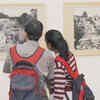 Visitors check out the frames on display during the photo exhibition on Hampi at Chitrakala Parishath on Saturday, January 10, 2009. (Photo/Mohammed Asad)  (BCCL)