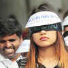 Students and volunteers participate in 'Blind Walk,' in a blind folded walk with a pledge to donate eyes, led by 500 visually challenged people in Bengaluru on October 13, 2016. (BCCL/Sunil Prasad)