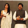 Shriya Saran and Vivek pose for the photogs during the audio release function of movie 'Chandra', held in the city recently.