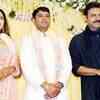 Venkatesh poses with Meena and Vidyasagar at their wedding ceremony on July 14, 2009. (PTI/R Senthil Kumar)