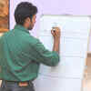 A schood teacher clicked during 'The Lost Sparrow' art exhibition at India Habitat Centre in New Delhi. (BCCL/M Gurunath Prabhu)See more of :