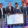 Janardan Gehlot, JS Shin, Tarundeep Rai, Dinesh Kumar and Virothu Santhosh K during a felicitaion ceremony for the Asian Games winners at hotel Oberoi.
