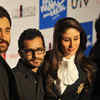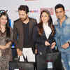 Imran and Kareena pose with designer duo Bharat and Reshma at the press meet of the film 'Ek Main Aur Ekk Tu' at Satyam Cineplex in Delhi