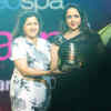 Niqi Kundhi, director, GeoSpa gives the Timeless Diva award to Hema Malini during the sixth GeoSpa asiaSpa India Awards, held at Kingdom of Dreams, Gurgaon. (BCCL/Ranjit Kumar)