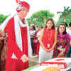 Stewart Beck (L), quite comfortable in a completely Indian ensemble in the colours of the Canadian flag, celebrating the friendship between Canada and India, held at High Commission of Canada in Delhi. (BCCL/M Gurunath Prabhu)