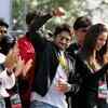 (PTI/Shahbaz Khan) Arshad Warsi and Bipasha Basu cheer during the Delhi Half Marathon 2010 in New Delhi on November 21, 2010.