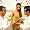 Anshul Goel, Hasleen Kaur and Chirag Goel during the launch of Brahma Jewels store in Delhi.  (BCCL/Ranjit Kumar)