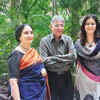 Sharen Lowen and Naresh Kapuria with Kajal Nalwa during latter's art exhibition, held in Delhi.