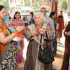 A guest with Anuradha Kumra, creative and buying head - women's wear, Fabindia during the launch of the Fabindia collection Kaleidoscope Eyes, inspired by Trishla Jain's artworks from Tangerine Trees and Marmalade Skies, held at Fabindia home store, N-Block, GK-1, New Delhi, on February 21, 2013. (BCCL/M Gurunath Prabhu)