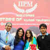 Prof. Arindam Chaudhuri, Genelia D'souza, Riteish Deshmukh and Prof. Rajita Chaudhuri at IIPM during the promotion of the movie 'Tere Naal Love Ho Gaya', on February 14, 2012.