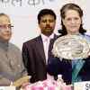 Sonia Gandhi shows a memento presented by Union Finance Minister Pranab Mukherjee during the launch of 'Swabhimaan', the financial inclusion campaign, in New Delhi. (PTI/Kamal Singh) Sonia Gandhi shows a memento presented by Union Finance Minister Pranab Mukherjee during the launch of 'Swabhimaan', the financial inclusion campaign, in New Delhi. (PTI/Kamal Singh) /events/delhi/sonia-gandhi-at-swabhimaan-launch/eventshow/7469793.cms04