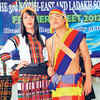 Students show off some fabrics from the North-East during the freshers' bash organized by the students of Hansraj College at the Faculty of Arts, Delhi University