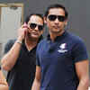 Mohd. Azharuddin and Abbas during the promotion of the movie 'Tezz' at Buddh International Circuit in Delhi (NCR) on April 23, 2012. (BCCL/M Gurunath Prabhu)