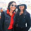Nishi Singh (L) and Kanchan Kapoor are all smiles during a car rally for women in the capital. (BCCL/M Gurunath Prabhu)