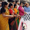 Nalini, Annapurna Mishra, Savita Gupta, Vani Tripathi and Mrinalini flagging off the race during the Woman Bike Rally, organized by NBT in Delhi. (BCCL)