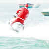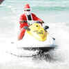 Santa Claus enjoys a jet-ski ride