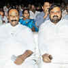 N Narasimha Reddy and Anjan Kumar Yadav during the engagement ceremony of Anupa and Arun.  (BCCL)