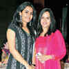 Sneha and Shweta get clicked on stage during the cradle ceremony of Arrika, hosted by her parents Siya and Santosh Kumar in the city recently. (BCCL/T Mallikarjun)See more of :