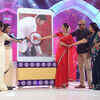 Jayasudha and Kajal Aggarwal during the audio launch of Telugu movie Brahmotsavam in Hyderabad.