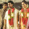 Allu Arjun talks to Ram Charan Teja and Upasana at their wedding reception, especially organised for the fans, held in Hyderabad.