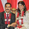 Uday Kiran and Visheeta during their wedding reception, held in Hyderabad.