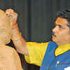 Sculptor Arjun Prajapati making a statue of Prakash Surana in front of the audience during an event, organised by Rajasthan Forum, in Jaipur. (Pic: Dinesh Meena) (BCCL)See more of :