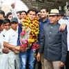 U-19 cricketer Kamlesh Nagarkoti with his father Laxman Nagarkoti (in hat) at Jaipur airport. (Photo: Pankaj Sharma) (BCCL) /events/jaipur/a-royal-welcome-for-nagarkoti-in-jaipur/kamlesh-nagarkoti/eventshow/62847389.cms02
