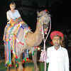 Rhonda Elliott-Sisodiya enjoys a special a special camel ride during the first anniversary party of Aquamist, held in the city. (BCCL/Dinesh Meena)