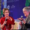 Germaine Greer interacts while Bee Rowlatt looks on during the 'Beyond the Female Eunuch' session of the Jaipur Literature Festival 2019 held at Diggi Palace in Jaipur. (BCCL/Bhagirath)