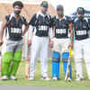 The cast and crew of the film 1983 had fun recently when they decided to play a cricket match against a rival team, that of the Ernakulam Press Club. Binoy Antony, Saiju Kurup, Prasanth and Sanju pose during the event. (BCCL)