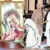 Prosenjit Chattopadhyay with Mamata Banerjee and Soumitra Chatterjee pays tribute to National award winner film maker Rituparno Ghosh during a condolence meeting in Kolkata on Tuesday June 11, 2012.