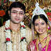 The newly-wedded couple Soumili Biswas and Ayan pose for the cameras during their wedding ceremony, held at Panchanantala, Behala, Kolkata.  (BCCL)