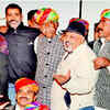 Bhupesh Rai (second from left) Saurabh Shukla (in hat) with the Rajasthani folk music group during a party hosted by Bhupesh, in Lucknow.  (BCCL)
