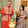 Ruby and Amit Srivastava during the inauguration of Deepa Iqbal Khare's art exhibition, held in Lucknow. (BCCL/Krishan)