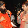 Baba Ramdev and Bhojpuri singer Manoj Tiwari singing a song together during Patanjali product launch at a community centre